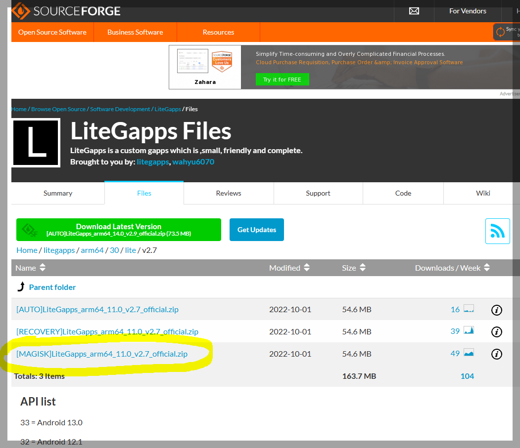 3) [MAGISK]LiteGapps - MAGISK라고 표기된 파일을 다운로드