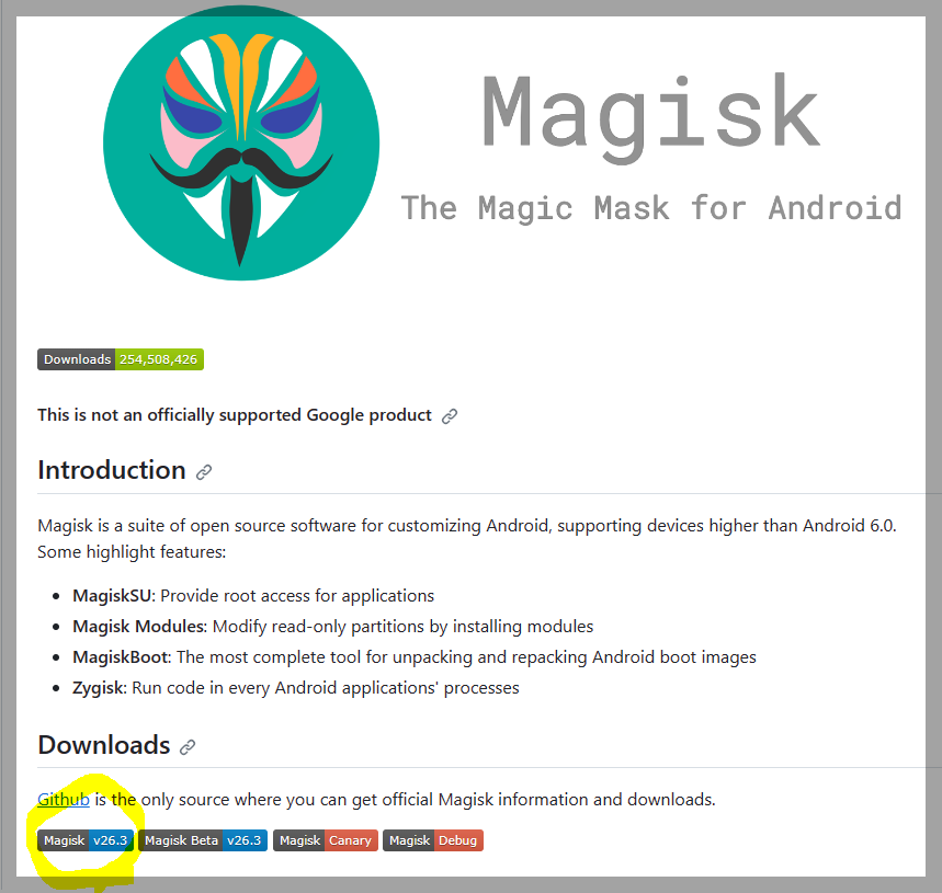2) Magisk(APK 파일) - 아래 표시된 버튼 눌러 다운로드